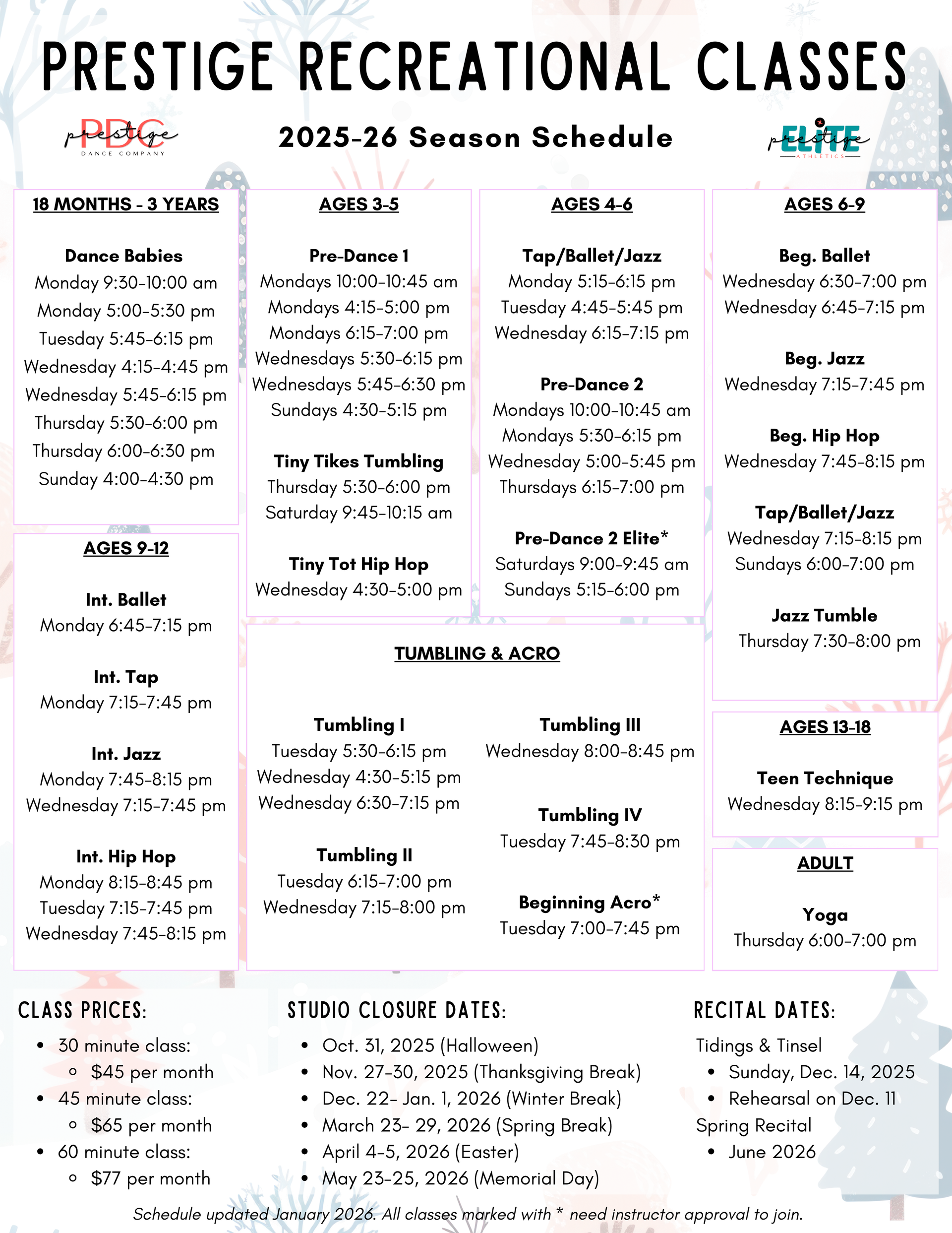 Courtney and Kim have been working together for the past 12 years. Their love for dance and teaching created an immediate bond. Their mission for Prestige Dance Company is to provide dancers a beautiful space to learn from amazing teachers in order to build upon each dancers passion for dance!